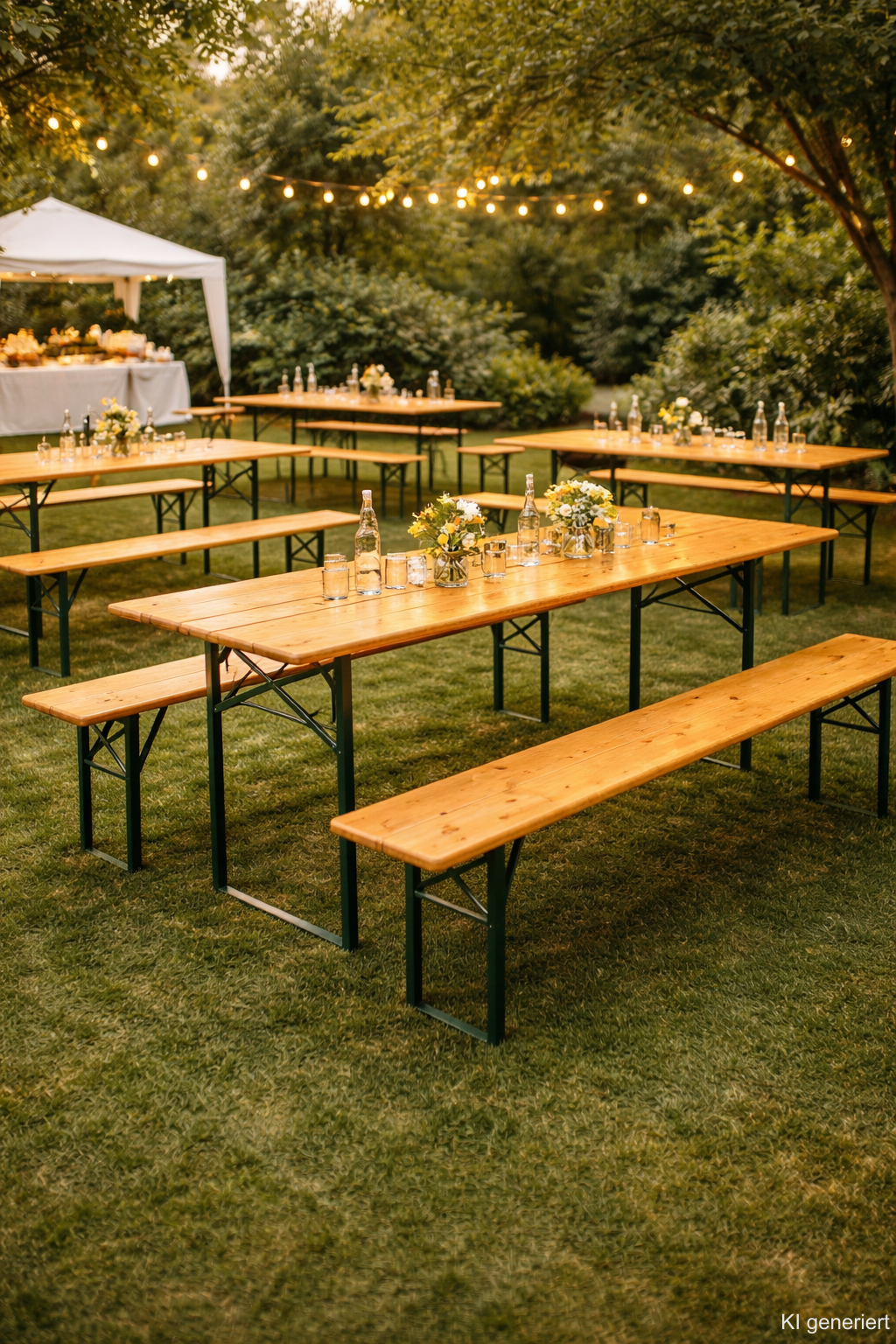 Ob Geburtstag, Gartenparty, Hochzeit oder Firmenevent – unsere Festzeltgarnituren bieten ausreichend Platz für Ihre Gäste und sorgen für eine gesellige Atmosphäre.
