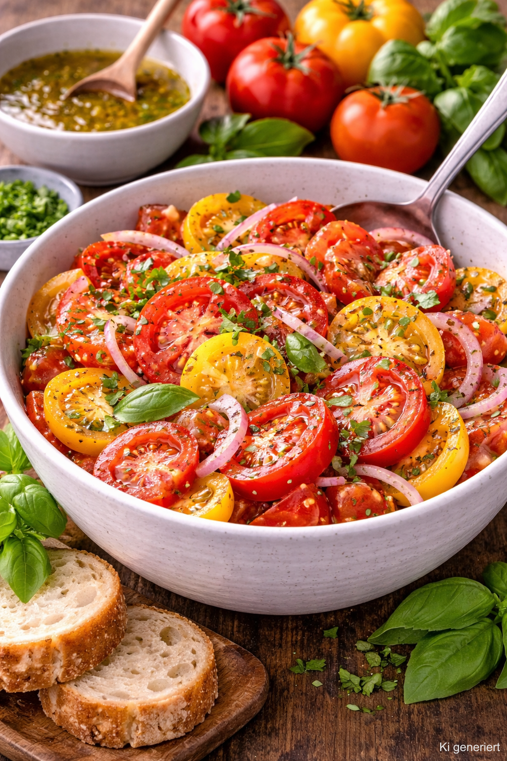 Mit viel Sorgfalt und aus ausgewählten Zutaten zubereitet, steht unser Tomatensalat für ehrlichen Geschmack und unkomplizierten Genuss.